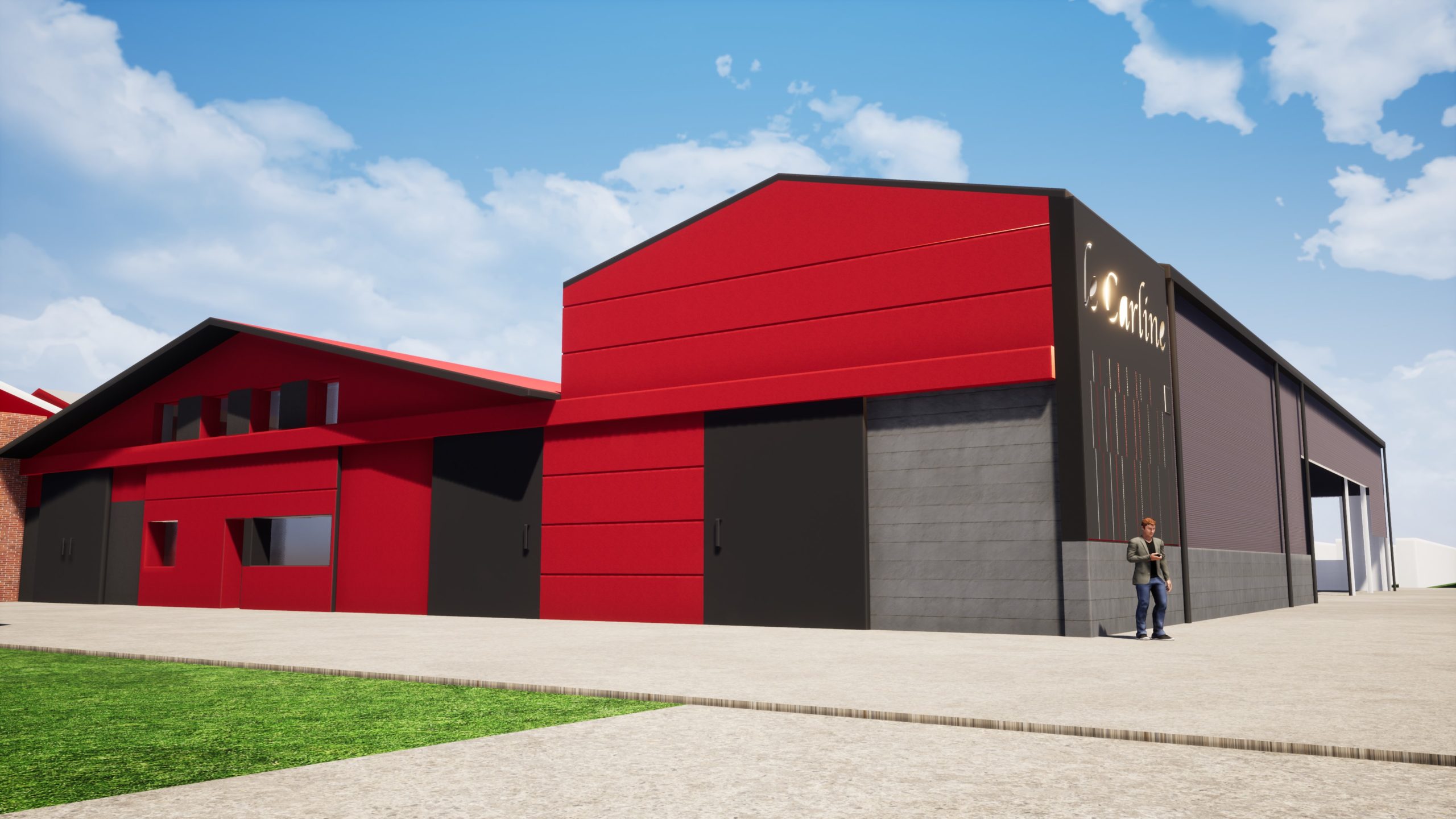 La colorazione dominante verrà individuata perché l’intera parte produttiva abbia un atteggiamento sommesso rispetto alla parte di rappresentanza adiacente ad eccezione dell’angolo sud ovest dove il rivestimento sarà caratterizzato da un innalzamento della parte muraria mentre a sud la prima campata sarà rivestita esternamente in lamiera colorata su cui verrà ritagliato il logo aziendale ed una parete sottostante con rivestimento a scandole di poco staccate per consentire la retroilluminazione. Il sistema concorre a definire una parte dell’immagine aziendale rendendola visibile anche nel percorso stradale che arriva da Belfiore.